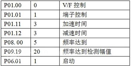现场要求马达能在3秒加速到50HZ,3秒停车,启动转矩大,动态响应快,频率到达10HZ时输出开关量信号,马达噪声小,对电网无冲击无污染。