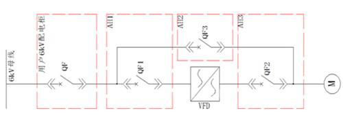 为满足一次风机能同时工频启动和运行的需要,系统采用1250A断路器用以提高可靠性。一次系统如下图所示: