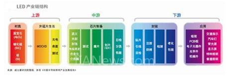 LED产业具有典型的不均衡产业链结构,一般按照材料制备、芯片制备和器件封装与应用分为上、中、下游,虽然产业环节不多,但其涉及的技术领域广泛,技术工艺多样化,上下游之间的差异巨大,上游环节进入壁垒大大高于下游环节(上游外延片制备的投资规模比一些下游应用环节高出上千倍),呈现金字塔形的产业结构。