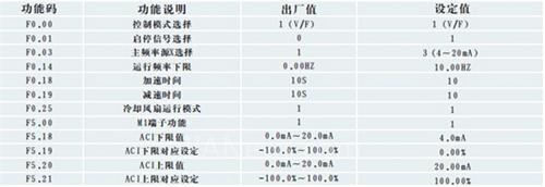 4.设置F0.14运行频率下限为10HZ,当2个电机需要切换投入使用时,节能控制器会发出指令让变频器运行到下限频率 再让电机投入,这样既可以保证启动平稳,又可以使设备快速到达告诉,提高产量。