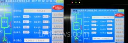 英威腾技术人员首先根据负载的特性,采用励磁电流与输出电压同步调节的方式,选择了适合本电机运行的最优励磁电流、电压变化曲线,并把该最优的励磁电流曲线直接固化到同步机的励磁柜上,把电压曲线采用多点V/F的方式,固化到变频器的参数中;然后又采用英威腾高压变频器所独有的同步机抑制震荡技术,有效的解决了负载启动不平稳,容易抖动,造成电流震荡的问题,出色的完成了两台高压同步电机的启动和稳定运行,该两台高压变频器于2011年11月13日投入生产连续无故障稳定运行。