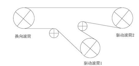 双滚筒驱动带式输送机有两种形式,一种是双滚筒共同驱动,另一种是双滚筒分别驱动。双滚筒共同驱动其实质和单滚筒驱动一样,两个滚筒由1:1的齿轮连接。双滚筒分别驱动其原理类似于两个单滚筒驱动,两个滚筒由2台电机拖动。双滚筒分别驱动带式输送机的原理示意图如下。