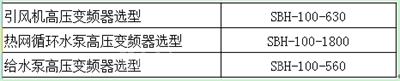 热电厂风机、水泵均属于平方转矩负载,参考工艺工况及森兰第三代高压变频器的技术优势,选型如下: