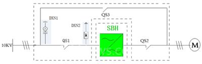 森兰第三代高压变频器手动一拖一的开关柜内部有三把隔离刀闸,并且柜门上装设高压带电显示及电磁闭锁装置,柜门上装设联锁动作保护装置,QS2、QS3之间采用机械互锁装置,不仅满足设备的安全稳定运行要求,也保证了人员操作的安全,QS1为变频器高压输入侧刀闸,QS2为变频器直接输出到电机的刀闸,QS3为工频运行旁路刀闸;变频时:手动把QS1、QS2合闸后,关上柜门,系统自检正常后发给上级高压开关柜允许合闸的信号;工频时:手动合上QS3,并断开QS1、QS2,上级高压开关柜即可以收到允许合闸的信号;需要值得注意的是隔离刀闸严禁带高压及负荷操作;