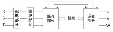 (2)变频器加回馈单元。这种方式是在母线上并联回馈单元,将电机工作在发电状态时变频器直流母线上的直流泵生电压转化为与电网通过回馈单元回馈到电网,对电网质量影响严重但同样未解决功率因数低,谐波电流大的问题。