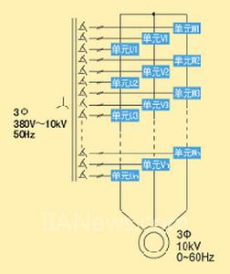 目前,我国大型异步电动机应用变频调速刚刚起步,可是,国外已经广泛使用,而且随着电力电子器件的发展,高压变频装置的型式也是多种多样。按拓扑结构分就有IGBT直接串联型,三电平型和多单元串联电压叠加型等。