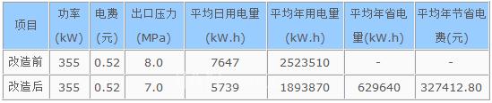 流量与转速成正比,电机的功率与转速的立方成正比,因此,当然用水量降低的时候可以用降低电机的转速来满足生产需,而无需再用阀门调节,如此就可以省下用阀门调节损耗的电能了。以下是2#水泵变频改造前和改造后的数据对比(采集一个月的数据,得出平均值,每月按30天计算,每年按330天计算):
