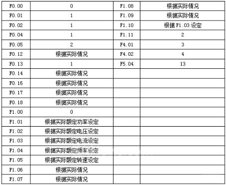 变频器AI1/GND端子提供与数控系统速度模拟量,AI1接数控系统模拟量接口正信号,GND接负信号,变频器运行参数如下:
