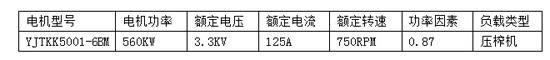 现场改造部分是预压榨机组。改造前:预压榨机组采用汽轮机带动,由于汽轮机效率低,糖分抽出率不高。所以改成异步电动机+变频器调节的方式。异步电机的详细参数见下表:
