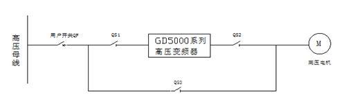 根据现场需要,预压榨机变频驱动系统由旁路柜、变压器柜、功率单元柜和控制柜组成。其中旁路柜为工频启动柜。在控制柜面板上设有本地/远程按钮、急停按钮、工/变频指示灯等。具体方案见下图:
