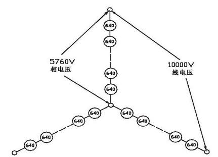 如图2所示,WIN-HV系列高压变频调速系统采用多个功率单元串联的形式。对于10kV系统,每相9单元串联(6kV系统每相6个单元串联),每个功率单元输出交流有效值Vo为640V,相电压为5760V,线电压为10000V。