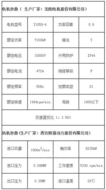 2# 450m3高炉鼓风机及配套电机参数如表1所示。