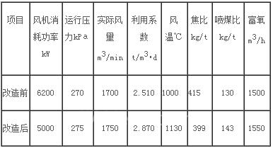 5.1鼓风机节能改造后高炉技术经济数据得到了提升