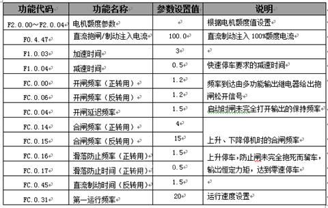 下降平稳停止:主要调试直流制动时间FC.0.45、减速时间F1.0.04和下降合闸频率FC.0.15。