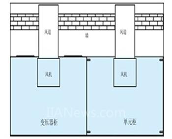 (3)为解决变频器小间在夏季温度过高问题,中电投某电厂引风机变频器小间冷却系统设计上采用了风道室外循环冷却方式(如图3所示),此设计大大降低了空调的使用率,目前变频装置不需空调冷却运行,即可满足变频装置运行要求,从而更加提高变频装置使用的节能效果。