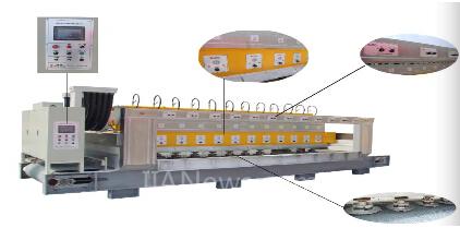 适用大理石、陶瓷、玻璃等材料的加工横梁根据板型数据自动换向; 18个磨头根据板型数据自动升降磨削; 板型检测开关状态跟着皮带动态传输;