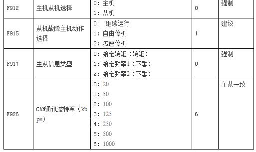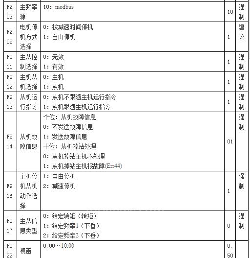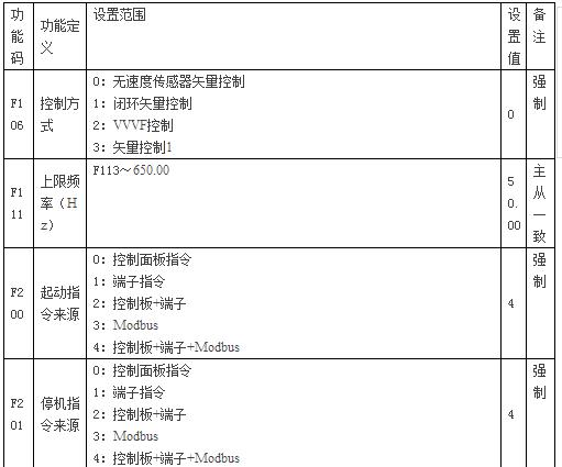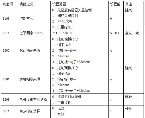 2、主机与从机电机额定频率必须一致。