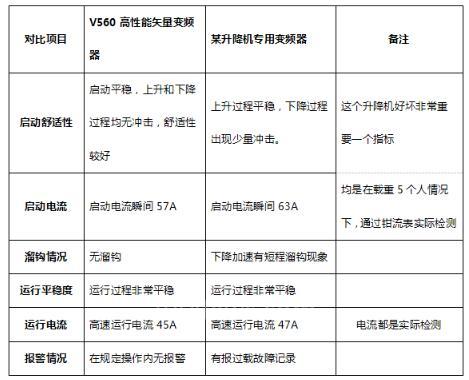 从现场对比情况来看,V560系列变频器在升降机的启动平稳性、节能性以及安全运行方面都是具有一定优势的。目前在全国各地使用几十百余台,反应使用效果都常好,得到客户的一致认可。