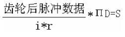 (减速比 i=5,分辨率 r=10000,皮带轮直径 D=60.96mm,S=1000mm)计算得出齿轮后脉冲数据,从而计算出齿轮比,为 966:37。