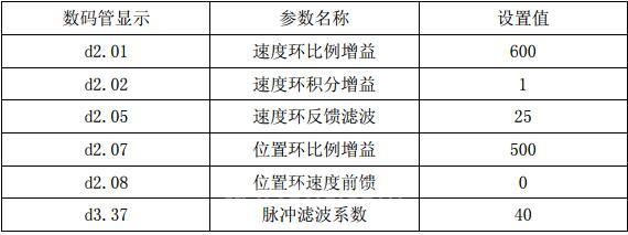 调试过程中,要确保在不引起系统震荡的情况下,尽量调高速度环比例增益。速度环积分增益和位置环比例增益要调小,防止横行轴停止时产生过冲。