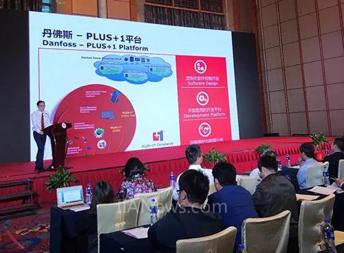 丹佛斯动力系统Controls业务部门中国区总监刘正富先生作为企业代表发言,介绍了丹佛斯集团及丹佛斯动力系统的概况,分享了丹佛斯在工业车辆领域的发展战略,阐述了丹佛斯在工业车辆上提供的开式和闭式液压系统方案、以及基于PLUS+1平台的智能整机控制和远程互联的解决方案。丹佛斯动力系统在国内有三家工厂,提供本地化生产并服务全球的产能。并在全球设立了三个应用开发中心,其中一个位于浙江海盐,专注于亚太地区根据不同市场需求,进行本地应用系统开发,并与客户共同研发与创新。