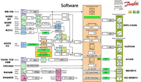 对于这种小型扫路机,丹佛斯使用H1P ACⅡ自动控制泵,油泵上集成控制器、油泵斜盘角度传感器、转速传感器及ACⅡ控制程序。可以实现自动控制模式、定速巡航模式和ECO模式等功能。