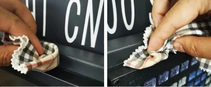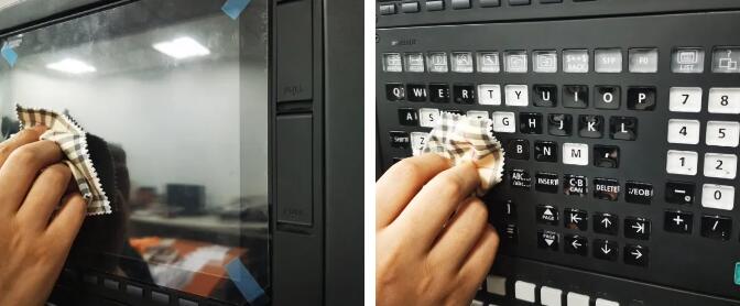 定期用软布或脱脂棉等擦拭屏幕及键盘表面(见图1、图2),清除表面留存的金属粉末,尘埃及油污。保持表面的清洁,防止油污粉尘的侵入造成元器件损坏。