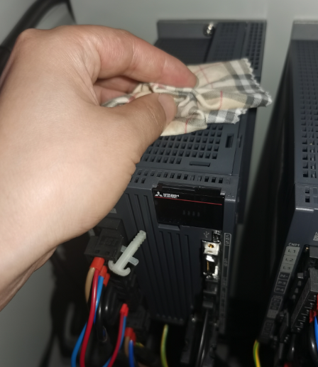 驱动器一般安装在系统配电柜中。目视检查驱动器外壳是否清洁,用干布擦除外壳上附着的油污粉尘(见图15),保证外壳上铭牌清晰完整。