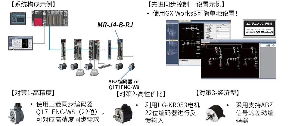 通过高级同步控制功能,可实现各个传送带之间速度和位置的同步控制。通过高速色标检测,准确锁存包装品间距,并使用高级同步控制的辅助轴功能,可简单地实现包装品间距误差补偿。