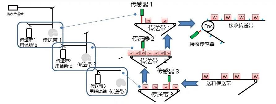 搭建智能传送带,使用辅助轴、同步控制及高速色标检测实现工件间距补偿。