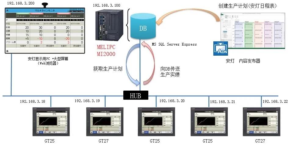 Andon Package可实现现场生产进度数据的有效可视化,通过生产日程管理工具设置可自动导入每日生产任务。还可通过数据库的连接,与上位生产管理服务器进行关联,细化生产管理。