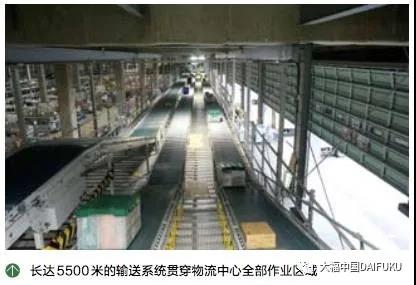 在原有的托盘式自动仓库、输送机、分拣机之外,大福针对该统配中心的业务特点与实际要求,提供了大量先进适用的自动化物流系统。改造后,相模原IDC由加工食品托盘式自动仓库、加工食品捆类商品托盘式自动仓库(捆类商品为日本独有,如啤酒,一箱24罐,4罐或6罐形成一捆)、日用品捆类商品托盘式自动仓库、箱(盒)式自动仓库、穿梭式货架系统、悬挂式输送线、高速搬运台车、托盘垂直输送机、箱(盒)式自动仓库入库用垂直输送机、速度可达125米/分的高速发货分拣系统等组成。
