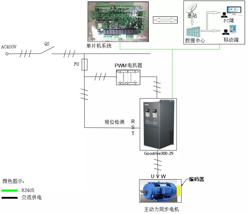 注释:英威腾Goodrive300-29四象限能量回馈型变频器应用方案电气系统示意图