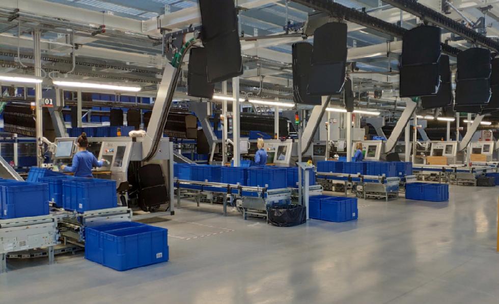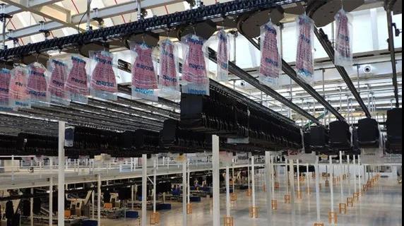 TGW实施的全渠道订单履行解决方案基于袋式分拣系统,每小时流量达12000件,用于叠装和挂装的合单和分拣。此外,该解决方案还包括两个穿梭车系统,其中一个用于库存的优化管理,另一个用于发货缓存。
