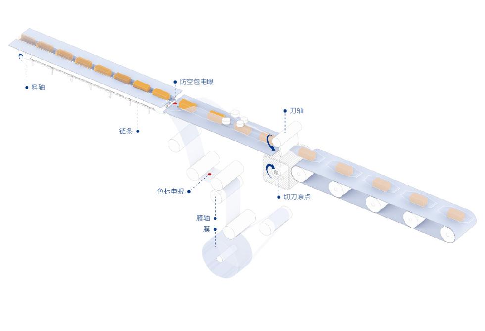 通过判断防空包电眼状态,进行防空包处理。空包时刀和膜自动停止动作,来料后自动跟随恢复运行,节省包装膜的同时并能保证料位精度、切位精度。