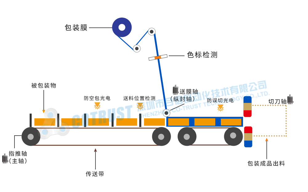 自动防空包、自动防误切料,节省包装材料,节省成本;