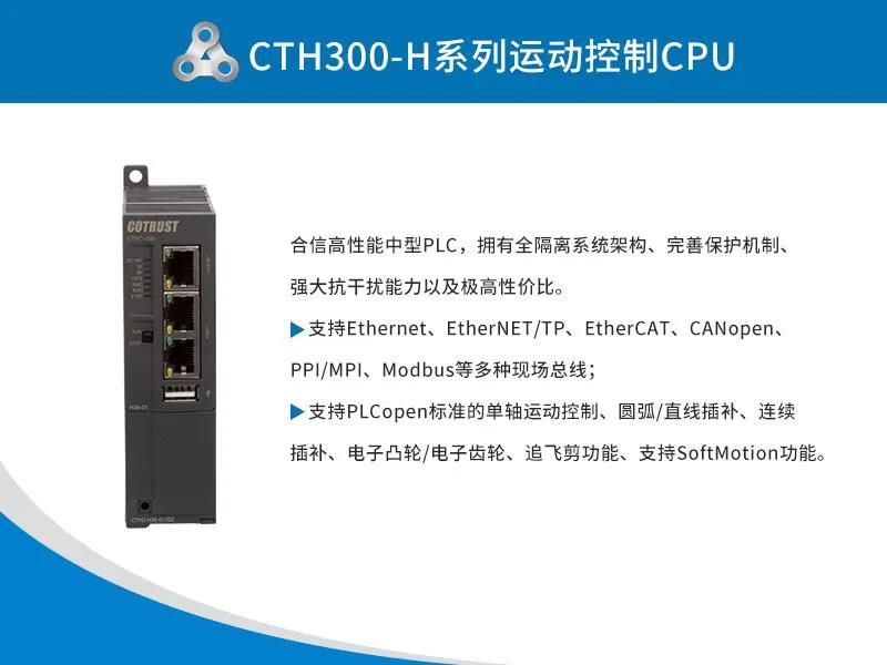 由合信中型PLC的CTH300-H系列CPU与合信旗舰版A4N伺服完成系统的控制,快速高效。