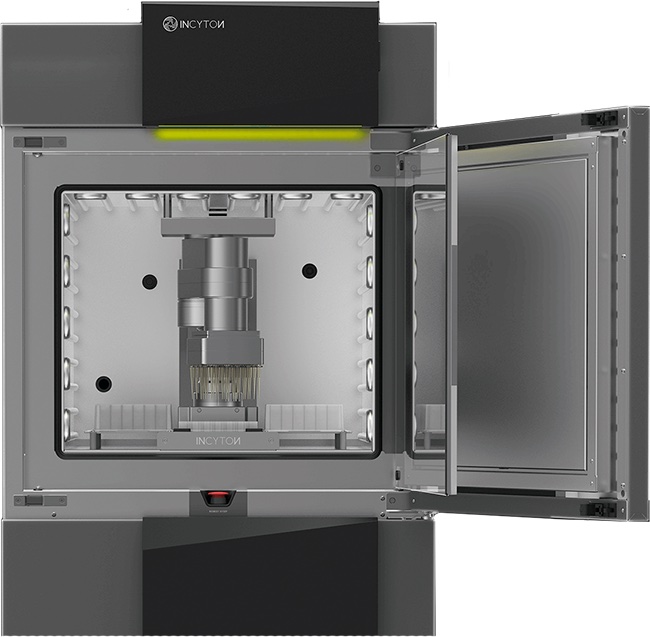 这些参数值受细胞新陈代谢的影响。比如说,与处于健康状态时相比,细胞在受药物副作用影响的时候消耗的氧量更少。pH值的变化也非常类似:由于新陈代谢产生酸性物质,因此细胞的pH值一般会降低到酸性范围。如果降低的幅度变小,则说明新陈代谢过程受到了影响。通过减小的程度可以确定药物的影响。在另一方面,电阻值与细胞数量成正比。如果电阻的提升出现延迟,则说明细胞受到了影响。到目前为止,完成这类试验需要大量人工操作。不同的步骤仅有一部分可以实现自动化。INCYTOИ ® 研制的全自动 CYRIS ®FLOX 设备不仅可以自动完成为期几天的试验过程,无需操作人员干预,还能全面记录试验结果。