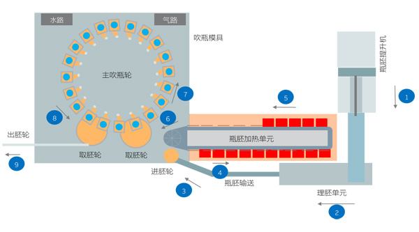 图1-高速吹瓶系统结构与流程