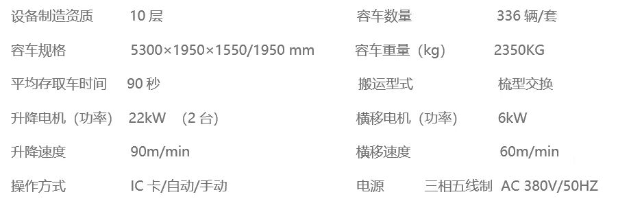 某公司自主研发垂直移动产品,结合了垂直升降、平面移动和巷道堆垛等各自的仓储技术特点,实现水平及垂直方向的同时快速运动,极大提高存取车效率。每个停车层可停放6-14辆车,层数较高可达16层,占地面积小于巷道堆垛类和平面移动类,平均每辆车占地面积仅1.2㎡,空间利用率高,存取车时间平均为90秒。垂直移动类自动停车系统是现代化城市中较适合地面上建设的高容量立体车库。