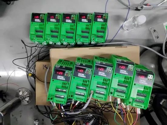 一台设备需要约10台变频器控制,变频器的安装位置有限,因此要求变频器的体积较小;设备供电为单相220V,在前端主开关位置需要选用30mA漏电保护开关,产品采用小功率变频器即可,一般采用0.75KW左右;由于变频器数量较多,调试起来比较麻烦,客户想使用能够快速进行参数调试的机型。
