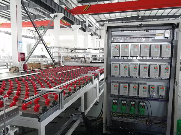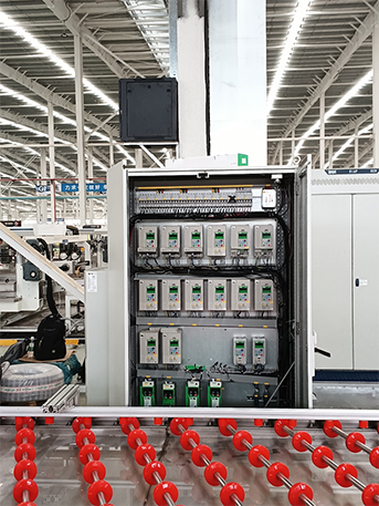 这套设备使用了CT NE200和Commander C200变频器,其中18台NE200、4台Commander C200。NE200变频器,用于传动,风机,水泵;2台C200变频器用于磨边机开合,定位精度在+0.5mm内;2台Commander C200变频器用于磨头高速主轴电机,最大频率400Hz。