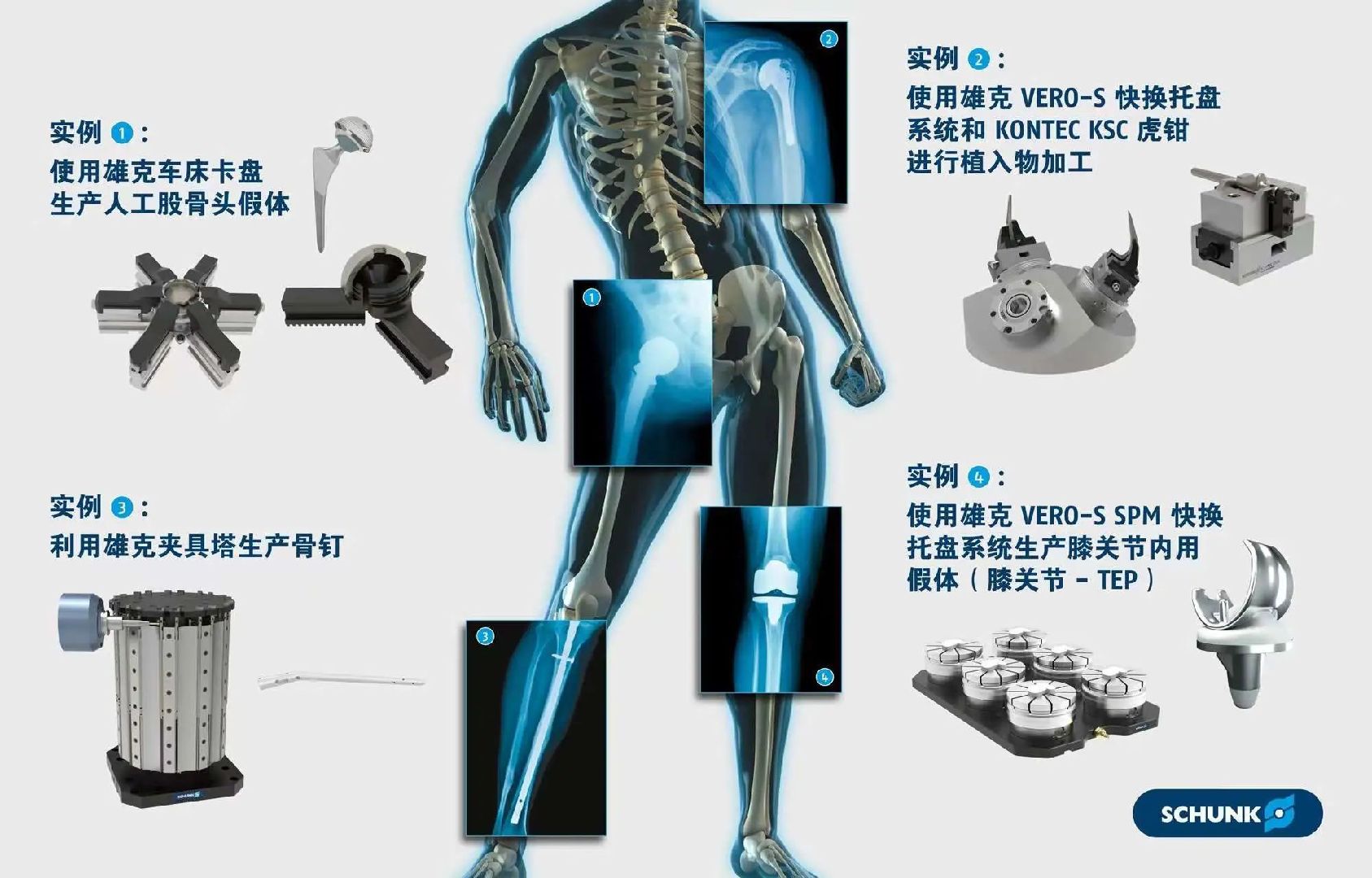 雄克为骨科植入物生产 提供类型多样的夹持解决方案