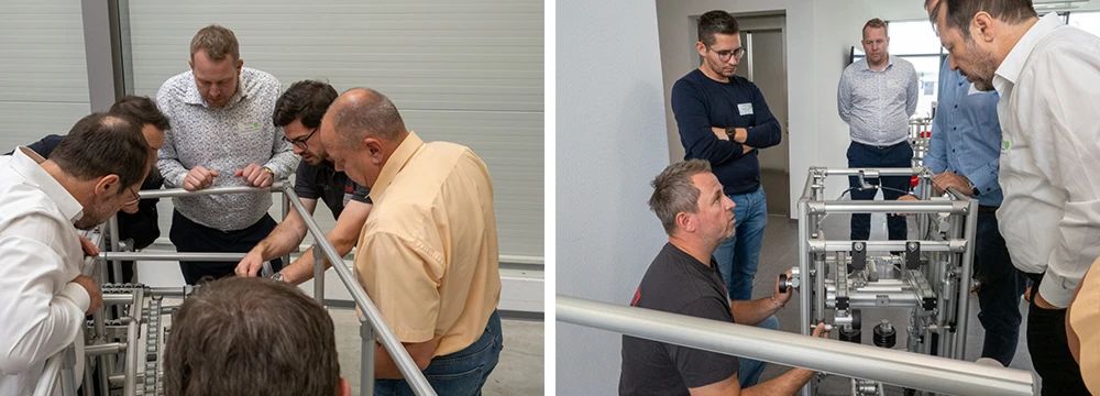 一般来说,低成本自动化只依靠机械和物理原理,比如重力、弹力和惯性力等。不过在低成本自动化混合解决方案中,也会使用传统的传感装置来执行特定的任务。2023 年 10 月 12 日,一群经验丰富的用户和新手齐聚德国黑里登校园,参加低成本自动化体验日活动。这个活动由安斯巴赫应用技术大学(Ansbach University of Applied Sciences)的 CETPM 研究院举行,目的是分享经验,传授知识和促进交流。用 item 产品创建的许多结构在活动中精彩亮相,我们的“低成本自动化团队”也分享了他们的行业经验。