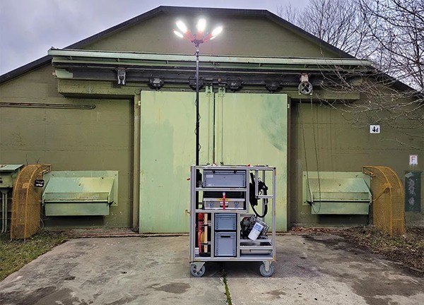 针对上述场景,LES 公司专门开发了一种配有发电机( 3 千瓦)的推车。它的作用是充当应急电源,在紧急情况下向建筑物供电。它还附带一根三米长的灯杆,可以为周围环境提供额外的照明,长时间停电会给运输和物流带来非常严重的后果。比如,加油站要有电力才能运行,但实际上很少有加油站配备应急发电机。LES 公司开发的这款基于推车的应急系统能确保燃料正常流动。
