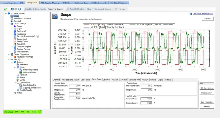 客户拟采用科尔摩根伺服电机替代现有测试方案,用于新能源汽车电动雨刷器电机的模拟测试。原方案存在两大技术缺陷:一是普通电机及部分伺服电机扭矩不足(需≥60Nm),测试中易损毁;二是负载电机无法实时识别扭矩方向,导致与测试电机同向输出,引发齿轮打齿甚至电机报废。新方案需满足高扭矩输出的同时,精确控制扭矩时序与方向。明确客户需求后,我们决定使用PDMM编程控制扭矩环输出的方式来解决客户的这个难题。