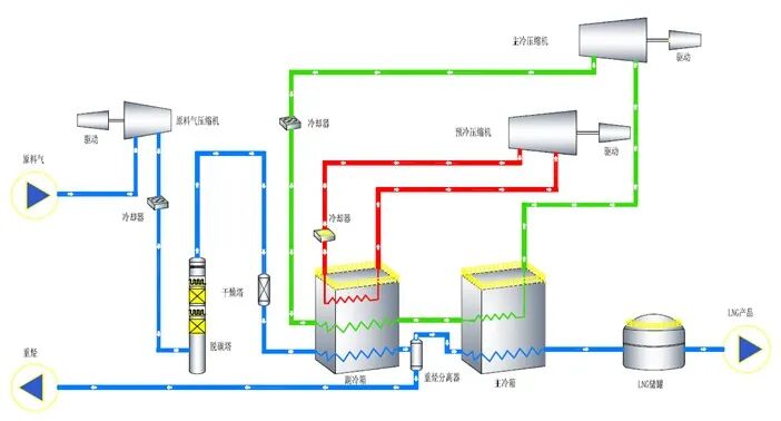 在液化流程中,压缩机通过变频驱动控制冷剂循环,在换热器中实现节流降温,从而有效利用压力差实现节能降耗。该流程对驱动设备提出了极高要求:不仅需具备高可靠性以支持连续生产,还需具备精确的控制能力,以应对设备启动期间的热应力控制(冷却速率需稳定在30℃/h~40℃/h之间),并实现电力消耗的优化。