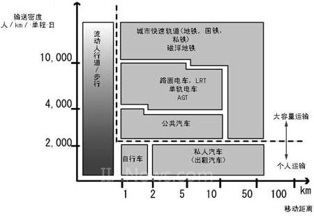 图1 不同交通方式的适用范围