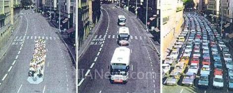 图2 公交与小汽车所占道路资源对比图