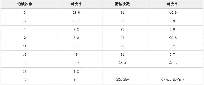 GB /Z17625.6- 2003谐波限制值如表1所示。